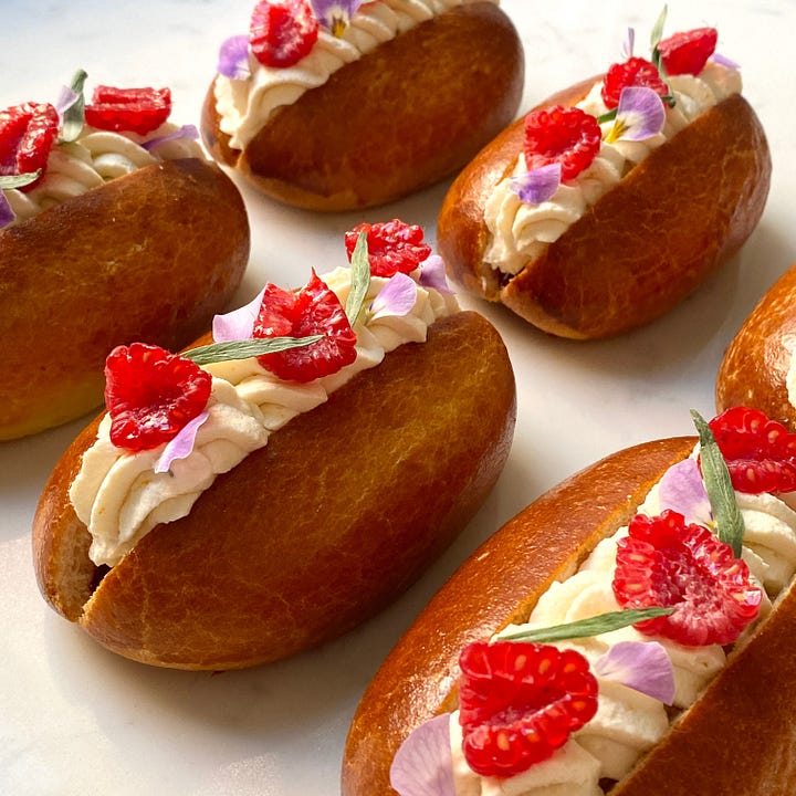 Iced Buns (free), Raspberry & Tarragon Cream Buns (paid)