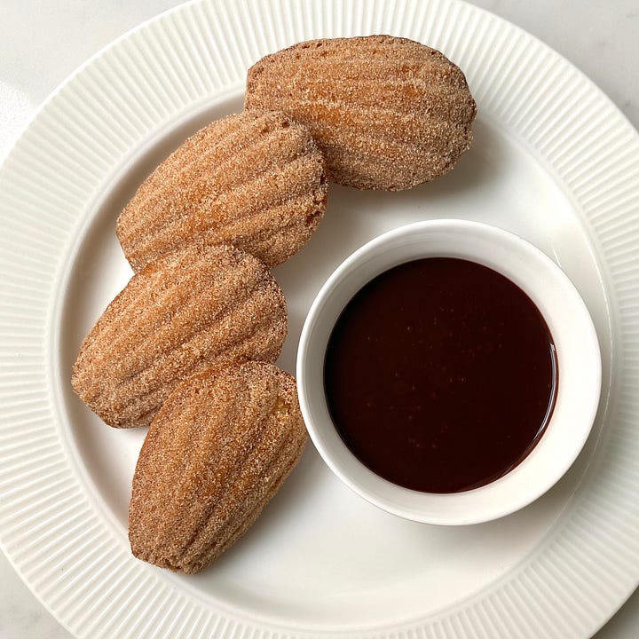 This week we’re making churro inspired madeleines, tossed in cinnamon sugar and serves with a spiced hot chocolate sauce. This recipe is exclusively for paid subscribers so if that sounds like something you fancy, please consider upgrading your subscription. You’ll receive an exclusive recipe every week, plus access to the full archive of over 150 thoroughly tested cake and dessert recipes. And you’ll be helping support me so I can continue creating and sharing recipes! 🩷