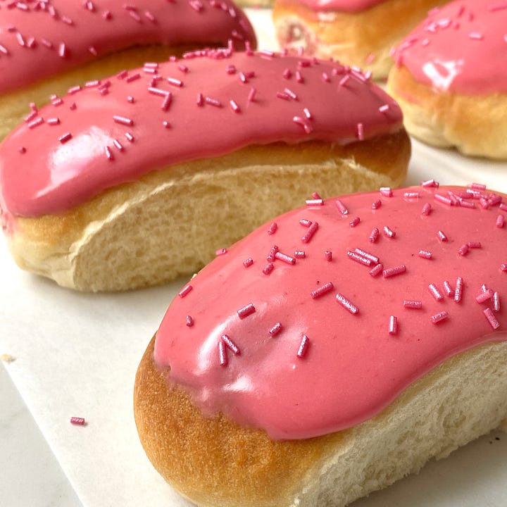 This dough works perfectly for both sweet and savoury bakes, today we’re making classic fruity iced buns which are endlessly customisable but if you’re in the mood for something savoury, I’m also sharing a recipe for Caramelised Onion & Gruyère Buns for paid subscribers, this is a recipe that I’ve been playing around with for a few months and I’m so happy with the final product, they’re stuffed with gruyère cheese sauce and jammy caramelised onions and topped with a mountain of grated cheese. If that sounds like something you fancy, please consider upgrading your subscription. You’ll receive an exclusive recipe every week, plus access to the full archive of over 150 thoroughly tested cake and dessert recipes. And you'll be helping support me so I can continue creating and sharing recipes! 🩷