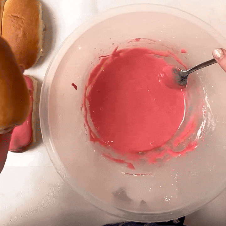 Dip one bun at a time into the glaze, scrape off any excess with a spoon or your finger.