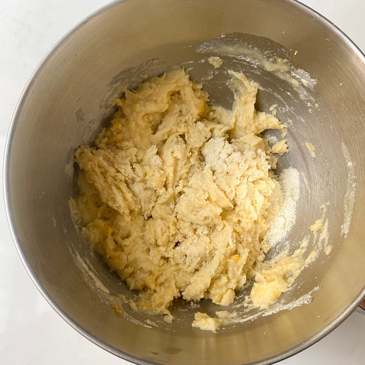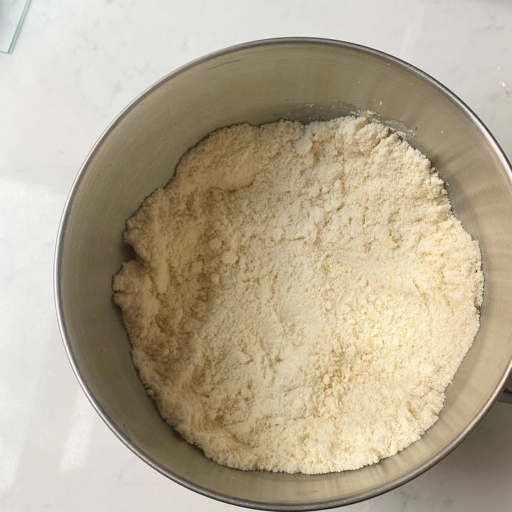 Combine all of the dry ingredients with the soft butter (it’s important that the butter is very soft!) and mix until the butter is fully incorporated and there are no lumps, the mixture should have the texture of breadcrumbs.